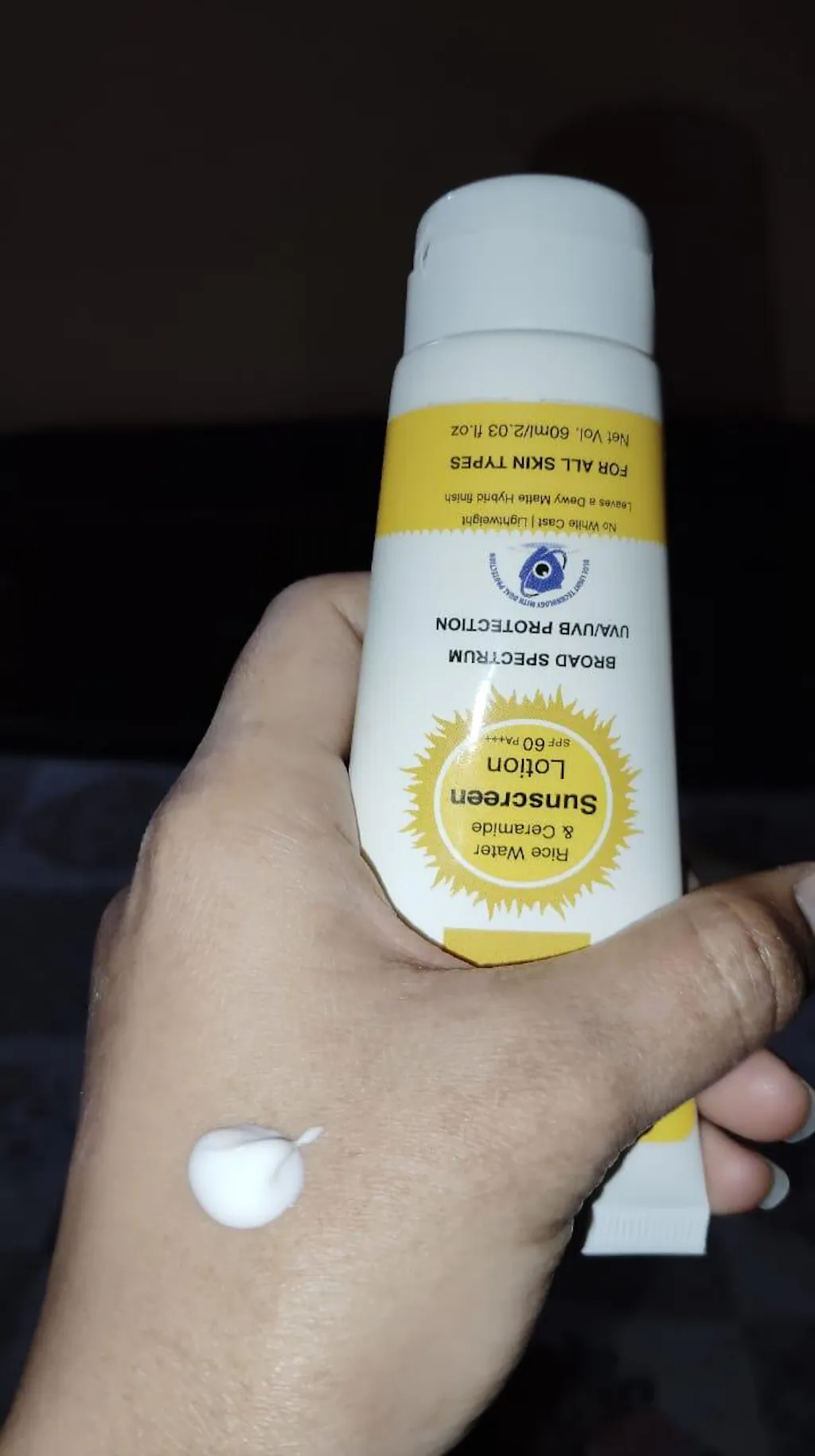 p. Ye mare third suncreen h. Because isko use krne ke baad yesa feel hi nhi hota ki face pe kuch lagaya bi h. Ye kaafi ache se face pe observer ho jata h and iska texture or fragnance bi achi h. Itne kaam rate pe itni achi sunscreen vo bi SPF 60 muje to bahut achi lagi or me aage bi ye hi cream use krungi.